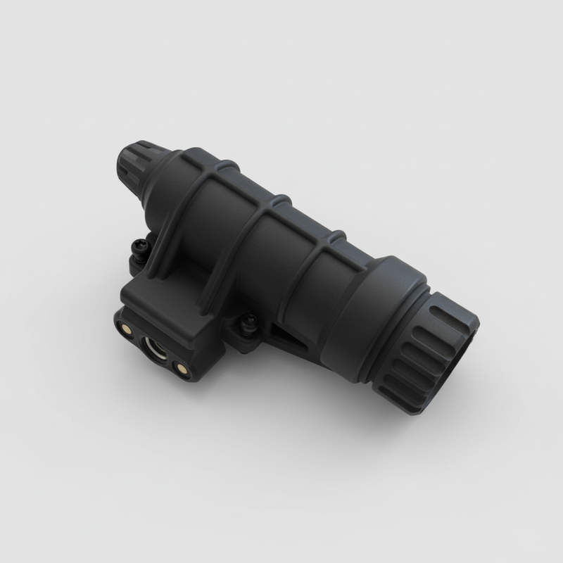 The MOD-14 Phantom Battery Compartment allows you to convert any MOD-31 Nightfighter pod into a fully functional standalone monocular. Simply remove the MOD-31 arm from the pod and attach this battery compartment to create a compact, lightweight, self-powered unit.